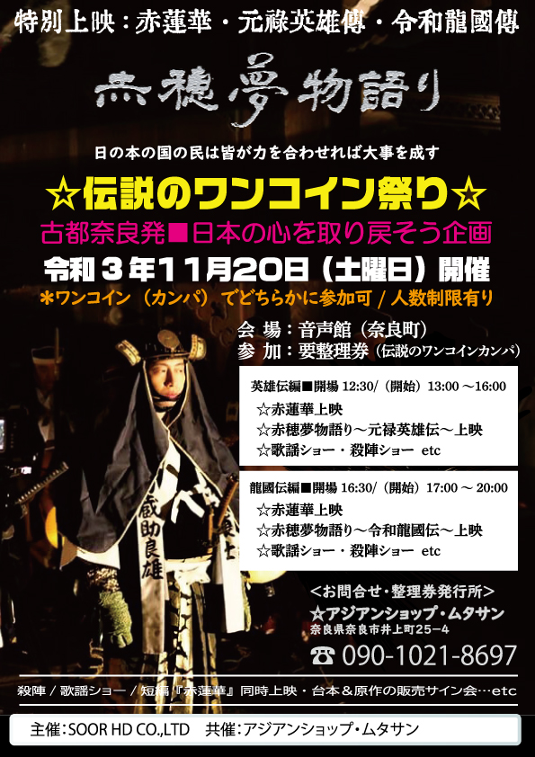 - 令和2年12月5日:赤穂夢物語リ ~令和龍國伝~ クランクイン